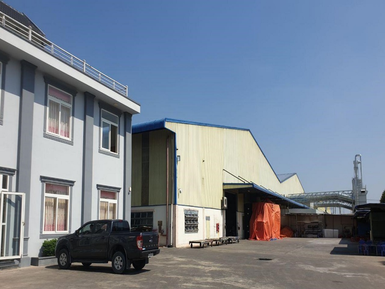 Diện tích đất: 40.000 m2 Quy mô xưởng: 24.000 m2 Kết cấu: Khung thép tiền chế, mái tôn, tường gạch xây, sàn bê tông.